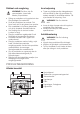 Progress Symbol Namn Beskrivning Belysning Du stängde av belysningen. Signalur Signalursfunktionen körs. Kontrollampa för uppvärmning Om du aktiverar en ugnsfunktion visas staplarna på displayen. Staplarna visar att temperaturen i produkten ökar eller minskar. När produkten är inställd på en viss temperatur försvinner staplarna från displayen. INNAN MASKINEN ANVÄNDS FÖRSTA GÅNGEN VARNING! Se säkerhetsavsnitten. Första rengöring Ta ut alla tillbehör och flyttbara ugnsstegar ur produkten.