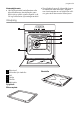 progress blikka þangað til pyrolytic hreinsunarkerfið byrjar. 4. Eftir smá tíma læsist hurðin og samsvarandi tákni mun koma í ljós. Eftir að pyrolytic hreinsunarkerfinu er lokið birtist tíminn á skjánum. Ofnhurðin er læst. Þegar ofninn er orðinn kaldur heyrist hljóðmerki og hurðin mun opnast. Að stöðva pyrolytic hreinsunarkerfið hvenær sem er: Ýtið á hnappinn . Ofnhurðin Ofnhurðin er gerð úr þremur glerplötum. Hægt er að taka ofnhurðina í sundur og fjarlægja innri plöturnar til að auðvelda þrif. 6.