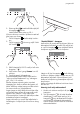 progress Slökkvið á ofninum og farið eftir útskýringunni að ofan til að gera kynninguna óvirka. Kynningin er áfram geymd í forritinu ef rafmagnið fer af. Pípir við snertingu Hægt er að velja að það pípir í hljóðmerkinu í hvert skipti sem ýtt er á hnappinn. Til að virkja þessa aðgerð verður að slökkva á ofninum. 1. Ýtið samtímis á hnappana og " " haldið þeim niðri í um 3 sekúndur. Viðvörunin pípir einu sinni Gera pípið óvirkt við snertingu: 1.