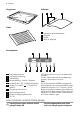 progress 19 och symbolen och indikeringen Pyro blinkar i displayen samtidigt som en signal hörs Montering av ugnsstegar Montering av ugnsstege: Haka först fast den baktill, positionera den sedan framtill och tryck in den på plats. Rengör stegarna genom att blötlägga dem i varmt vatten med handdiskmedel. Tag bort svåra fläckar med en svamp och varmt vatten med handdiskmedel. Skölj noga och torka torrt med en mjuk duk.