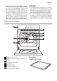 progress O forno possui quatro níveis de inserção. As posições dos tabuleiros são contadas a partir do fundo do forno, tal como indicado na figura. Os acessórios têm de ser sempre inseridos correctamente (ver figura). Não coloque utensílios de cozinha e recipientes directamente sobre a base do forno. Ar quente Os alimentos são cozinhados através da circulação do ar pré-aquecido no interior do forno fornecido por uma ventoinha colocada na parede traseira do forno.