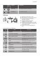 Progress 9 Touche sensiti‐ ve 9 10 Fonction Description HORLOGE Pour régler les fonctions de l'horloge. MINUTEUR Pour régler le minuteur. Affichage A B G C F E D A. Symbole de la fonction du four B. Affichage de la température/de l'heure C. Horloge / Indicateur de chaleur résiduelle / Minuteur D. Voyant de chaleur résiduelle / Indicateur de niveau d'eau E. Indicateurs des fonctions de l'horloge F. Voyant de préchauffage / Indicateur de préchauffage rapide G.
