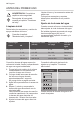 Progress Alimento Temperatura (°C) Tiempo (min) Posición de la pa‐ rrilla Pan blanco 190 - 210 40 - 60 1 Baguette 200 - 220 35 - 45 1 Brioche 180 - 200 40 - 60 1 Chapata 200 - 220 35 - 45 1 Pan de centeno 190 - 210 50 - 70 1 Pan negro 190 - 210 50 - 70 1 Pan de semillas 190 - 210 40 - 60 1 Pan/Rollitos 200 - 220 25 - 35 2 Tabla Sonda térmica Carne De Res Temperatura interna del alimento (°C) Poco Hecho Medio Muy hecho Rosbif 45 60 70 Lomo 45 60 70 Carne De
