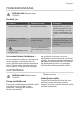 Progress 7 PROBLĒMRISINĀŠANA BRĪDINĀJUMS! Skatiet sadaļu "Drošība". Ko darīt, ja... Problēma Iespējamie iemesli Risinājums Plīti nevar ieslēgt vai izslēgt. Nostrādājis drošinātājs. Pārliecinieties, vai ierīces darbības traucējums ir sais‐ tīts ar drošinātāju. Ja droši‐ nātājs nostrādā atkārtoti, sa‐ zinieties ar kvalificētu elektri‐ ķi. Atlikušā siltuma indikators neieslēdzas. Zona nav karsta, jo darbojas pavisam īsu laiku.