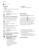 Progress 3 Yleiset turvallisuusohjeet • • • • • • • • • Asennuksen ja johdon vaihtamisen saa suorittaa vain ammattitaitoinen henkilö. Laitteen sisäosa kuumenee käytön aikana. Älä kosketa laitteen lämpövastuksiin. Käytä aina uunikintaita, kun käsittelet lisävarusteita tai uunivuokia. Irrota pistoke pistorasiasta ennen kuin aloitat huoltotoimenpiteet. Varmista ennen lampun vaihtoa, että laite on pois päältä. Näin vältät mahdollisen sähköiskun. Laitteen puhdistuksessa ei saa käyttää painepesuria.