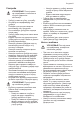 Progress 5 Употреба УПОЗОРЕЊЕ! Постоји ризик од повређивања, опекотина и струјног удара или експлозије. • Уређај је само за кућну употребу. • Не мењајте спецификацију овог уређаја. • Поведите рачуна да отвори за вентилацију нису запушени. • Не остављајте уређај без надзора током рада. • Уређај треба искључити након сваке употребе. • Будите опрезни кад отварате врата уређаја док он ради. Може се десити да изађе врео ваздух.