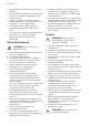 Progress 15 Livsmedel Mängd Antal (g) Grönsaksgratäng - - Kammusslor - Makrill Fisk i skivor Temperatur (°C) Tid (min) Falsnivå 1:a sidan 2:a sidan 200 20 - 25 - 3 - 200 15 - 20 - 3 2-4 - 200 15 - 20 10 - 15 3 4-6 800 200 12 - 15 8 - 10 3 SKÖTSEL OCH RENGÖRING VARNING! Se säkerhetsavsnitten. Anmärkningar om rengöring • Torka av framsidan med en mjuk trasa och varmt vatten och diskmedel. • Använd ett rengöringsmedel avsett för rengöring av metallytor.
