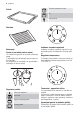 progress Delovanje Uporaba pečice Pomembno! Pečice ne oblagajte z aluminijasto folijo, na dno pa ne postavljajte pekačev, ker se v nasprotnem primeru zaradi povišane temperature poškoduje emajl v pečici. Pekače in posodo za pečenje v pečici ter aluminijaste pladnje vedno postavite na rešetko, ki je vstavljena v vodila za rešetko. Segreta hrana proizvaja paro - podobno kot v kotličku. Ko para pride v stik s steklenimi vrati pečice, pride do kondenzacije in nastanka vodnih kapljic.