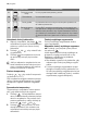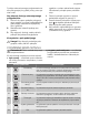 progress Wyświetlacz A B G A) Symbol funkcji piekarnika B) Wyświetlacz temperatury/czasu C) Wskazanie zegara/ciepła resztkowego (również minutnika i aktualnego czasu) D) Wskaźnik ciepła resztkowego E) Wskaźniki funkcji zegara (patrz tabela „Funkcje zegara”) F) Wskaźnik nagrzewania G) Numer funkcji/programu piekarnika C F E D Inne wskaźniki na wyświetlaczu Symbole Nazwa / / Opis Program automatyczny Umożliwia wybór programu piekarnika. Mój ulubiony program Uruchomiony jest ulubiony program.
