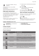 Progress Symboli Nimi Uunivalo Valon sammuttaminen. Hälytinajastin Hälytinajastin suoritetaan. Kuumennuksen merkkivalo Jos otat uunin toiminnon käyttöön, palkit syttyvät näyttöön. Palkit ilmaisevat, että laitteen lämpötila nousee tai laskee. Kun laite on saavuttanut asetetun lämpötilan, palkit sammuvat näytössä. Keittoalueiden vääntimet Keittotasoa käytetään keittoalueiden vääntimillä. Katso keittotason ohjekirja. Lue keittotason käyttöoppaan "Turvallisuusohjeet" -luvut.