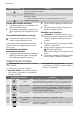 progress Problēmas Iespējamie iemesli Risinājums Displejs rāda F102. Durvju slēdzis ir bojāts. • Cieši aizveriet durvis. • Izslēdziet ierīci, izmantojot mājas elektrosistēmas drošinātāju vai drošinātāju kārbas aizsargslēdzi, un tad atkal ieslēdziet to. • Ja displejā atkārtoti parādās F102 kods, klientu apkalpošanas nodaļu. Laika displejs rāda kļūdas kodu, kas nav sarakstā. Notikusi kļūme elektronikā.