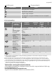progress 5 5 Indítás gomb 6 Programválasztó Visszajelzők Leírás Mosogatási fázis visszajelző. Szárítási fázis visszajelző. Program vége visszajelző. Só visszajelző. A program működése során ez a visszajelző nem világít. PROGRAMOK Program1) 2) 3) Szennyezettség mértéke Töltet típusa Program szakaszok Időtartam (perc) Energiafogyasztás (kWh) Víz (l) Erős szennyezettség Edények, evőeszközök, lábasok és fazekak Előmosogatás Főmosogatás 70 °Con Öblítés Szárítás 130 - 150 1.3 - 1.