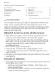 Progress Problem og alarmkode Mulig årsak og løsning Programmet starter ikke. • Kontroller at produktets dør er lukket. • Trykk Start. • Hvis starttidsforvalg er valgt, avbryt innstillingen eller vent til slutten av nedtellingen. • Produktet har startet oppladingsprosedyren for harpiksen i vannmykneren. Varigheten på prosedyren er ca. 5 minutter. Produktet tar ikke inn vann. • Sluttindikatoren blinker én gang. • Start-indikatoren blinker kontinuerlig. • Kontroller om vannkranen er åpen.