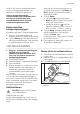 Progress Problem og alarmkode Mulig årsag og løsning Programmet varer for længe. • Hvis tilvalget for udskudt start er indstillet, kan du annullere indstillingen for udskydelse eller vente på, at nedtællingen er færdig. Lille lækage fra apparatets låge. • Apparatet står ikke plant. Løsn eller stram de justerbare ben (hvis relevant). • Apparatets låge står ikke centralt på karret. Indstil det bageste ben (hvis relevant). Apparatets låge er svær at lukke. • Apparatet står ikke plant.