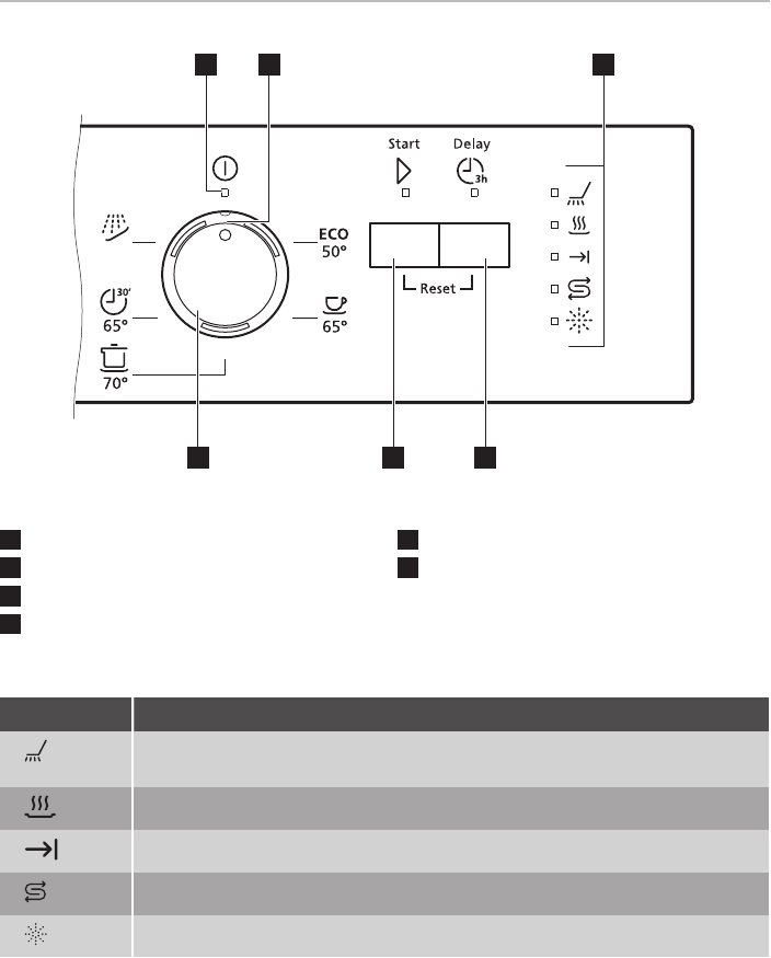 Rinse aid indicator. It is always off while the programme operates.
