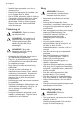 Progress 37 Hvis avløpet er blokkert, vil vann som har tinet samle seg i bunnen av produktet. Service • Kontakt et autorisert servicesenter for å reparere produktet. • Det skal bare brukes originale reservedeler. Avfallsbehandling ADVARSEL! Fare for skade og kvelning. • Koble produktet fra strømmen. • Kutt av strømkabelen og kast den. • Fjern døren for å forhindre at barn og dyr blir stengt inne i produktet. • Kjølemiddelkretsen og isolasjonsmaterialet til dette produktet er ozon-vennlig.