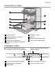 progress 5 ОПИСАНИЕ НА УРЕДА 7 1 2 3 4 5 Горна кошница Скала за твърдост на водата Резервоар за сол Отделение за препарати Отделение за препарат за изплакване 6 7 8 9 Табелка с данни Филтри Долно разпръскващо рамо Горно разпръскващо рамо КОМАНДНО ТАБЛО Бутоните за управление са върху командното табло. За да работите с 1 A 5 1 Бутон за включване/изключване 2 Индикатори на програмите 3 Индикатори бутоните, дръжте вратичката на уреда отворена.