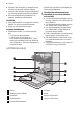 progress 5 KÄYTTÖPANEELI Painikkeet sijaitsevat käyttöpaneelin yläosassa. Painikkeita voidaan käyttää pitämällä laitteen luukku raollaan. 1 A 5 1 Virtakytkin 2 Ohjelman merkkivalot 3 Merkkivalot B 2 4 3 4 Ohjelmanvalintapainike 5 Ajastimen painike Merkkivalot Ohjelma loppu -merkkivalo. Syttyy seuraavissa tilanteissa: • pesuohjelma on päättynyt • vedenpehmentimen tasoa säädetään • Merkkiäänien käyttöönotto/käytöstäpoisto. • Jos laitteessa on toimintahäiriö. Huuhtelukirkasteen merkkivalo.