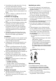 progress ANVÄNDNING AV DISKMEDEL OCH SKÖLJMEDEL 1 3 2 30 7 4 MA X + 3 2 - 1 20 2. Fyll sköljmedelsfacket 3 med sköljmedel. "Max." indikerar den maximala nivån. 3. Torka upp eventuellt utspillt sköljmedel med en absorberande trasa så att det inte bildas för mycket skum under nästa diskprogram. 4. Stäng sköljmedelsfacket. Tryck på locket tills det låser fast i läge. 4 6 5 Användning av diskmedel Tänk på miljön och använd inte mer än den mängd diskmedel som behövs.