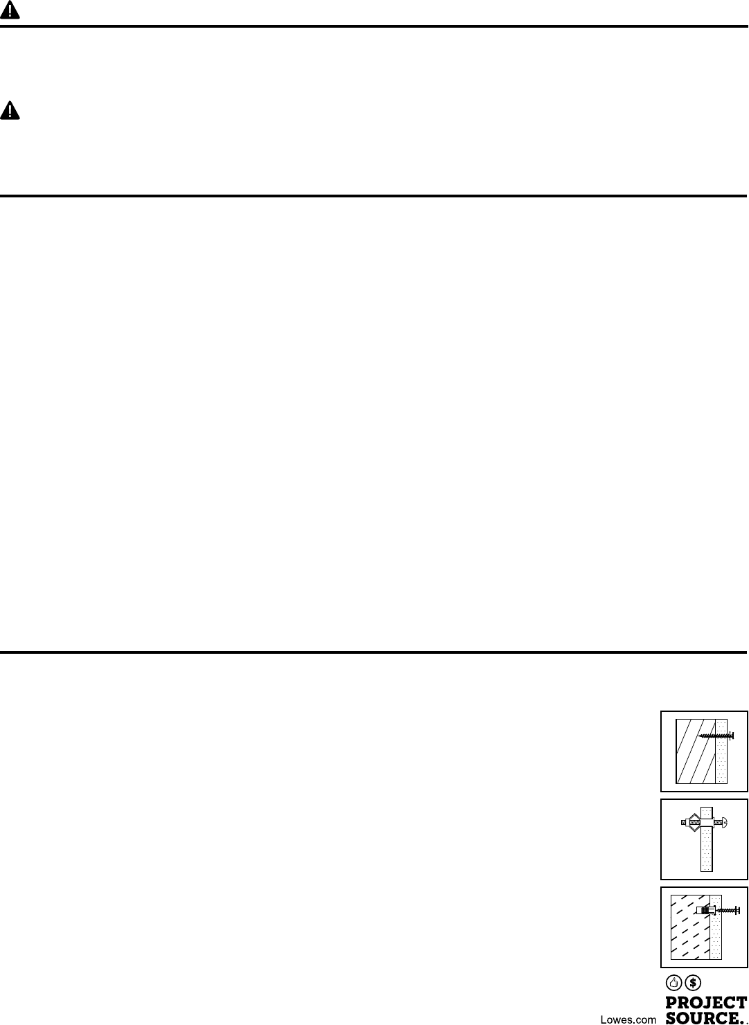 et de rondelles./PARED CON MONTANTES: Fije a la pared con tornillos # 12 x 3 pulg y arandelas en