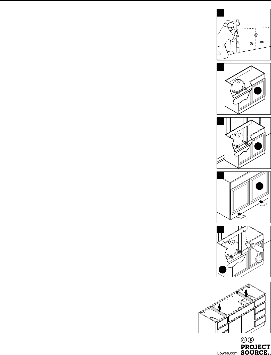1. Mark wall for cabinet placement and note the location of the water supply lines and