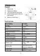 Operating temperature Storage temperature Auto laser switch-off Auto instrument switch-off Dimension Weight 0°C ~ +40°C -10°C ~ +60°C After 20 seconds After 180 seconds 100 x 43 x 28mm 60g(without Battery) Remark [1] Applies for 100 % target reflectivity (white painted wall), low background illumination, 25 °C. [2] Applies for 10 to 500 % target reflectivity, high background illumination, -10 °C to +50 °C. [3] Tolerances apply from 0.1m to 10 m with a confidence level of 95 %.