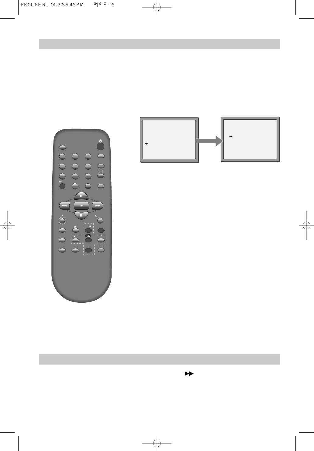 Druk op MENU en selecteer ‘16:9 beeldformaat’. Druk tweemaal op PR- en daarna op OK.