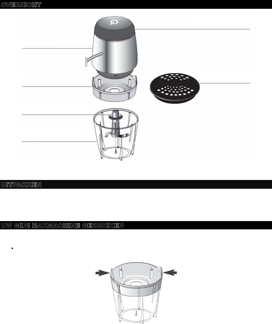 Wees voorzichtig wanneer U uw hakmachine uitpakt aangezien de messen heel scherp zijn.