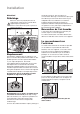 • Eventuele voor de installatie van het apparaat noodzakelijke elektrotechnische werkzaamheden, moeten worden uitgevoerd door een gekwalificeerde elektricien of competent persoon. • Er moet voor gezorgd worden dat het apparaat niet op het aansluitsnoer komt te staan. • Als het apparaat op een tapijtvloer wordt geplaatst, dient de hoogte van de stelvoetjes te worden aangepast om de lucht toch goed te kunnen laten circuleren.
