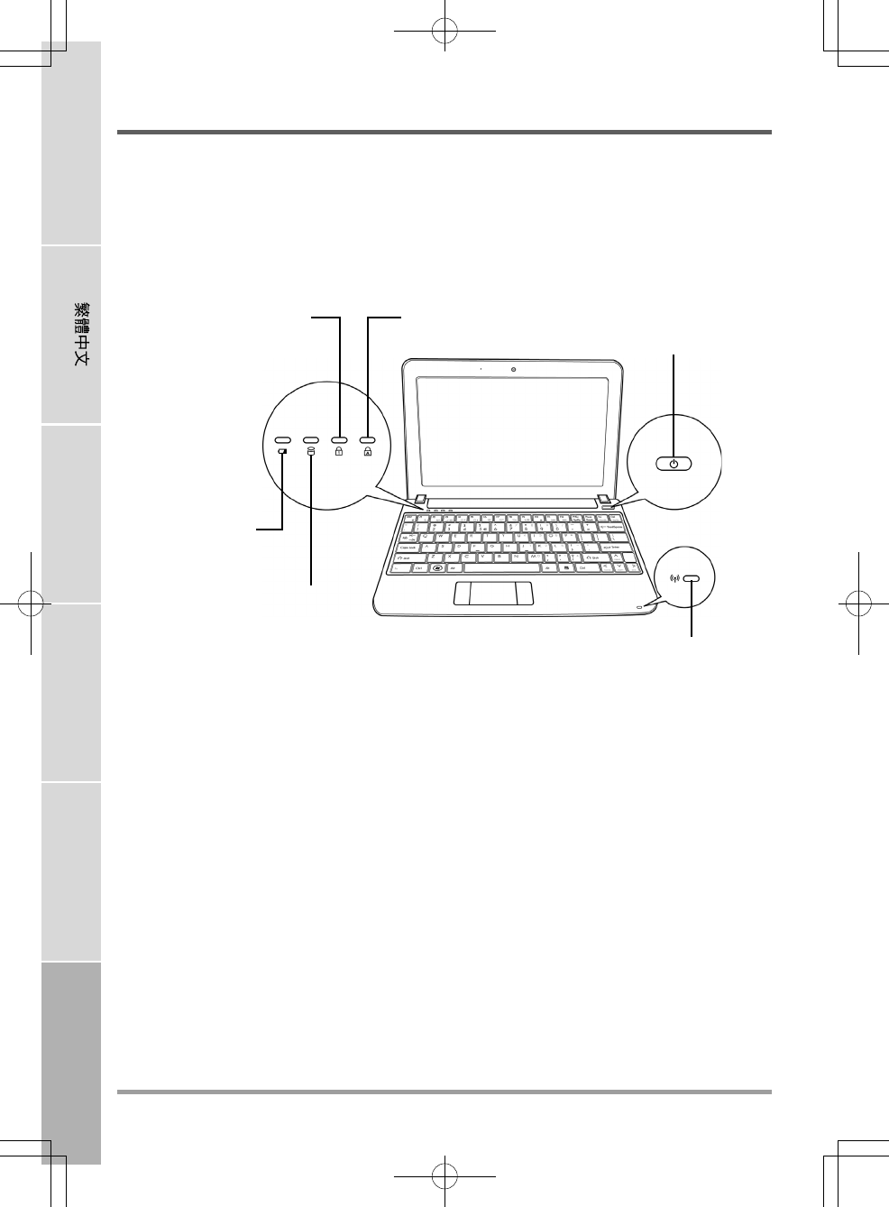 sono: stato di Acceso/In sospensione, stato batteria/alimentatore, attività disco rigido (HDD),