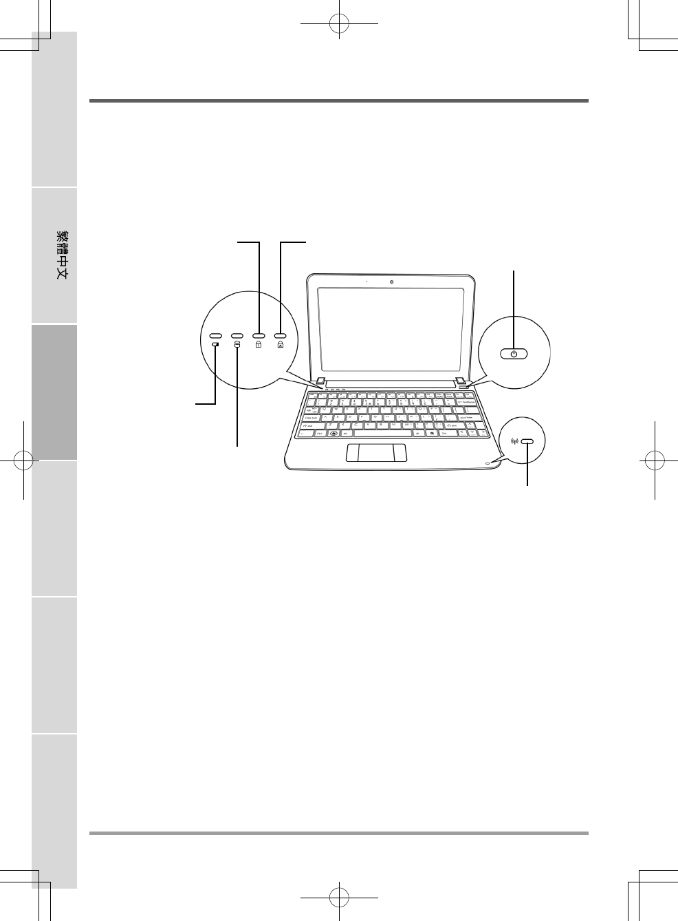 Etat Marche/Veille, état Batterie/Adaptateur CA, activité du disque dur (HDD), Verr Num, Verr