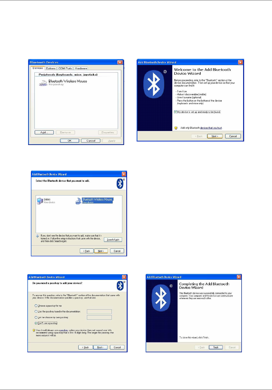 in the Control Panel, open the “Bluetooth Management” window, click “Add”, tick off “facility is ready for