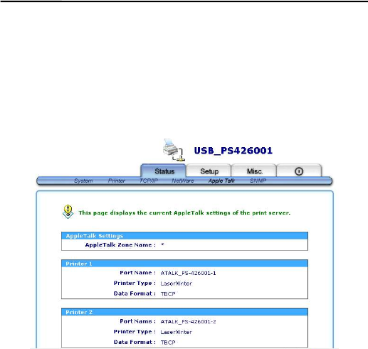 the current AppleTalk Status of the print