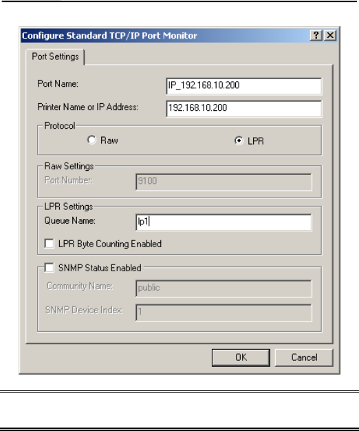 TCP/IP LPR Port Printing Installation