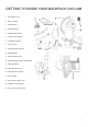 GETTING TO KNOW YOUR BACKPACK VACUUM 1. Main Motor Unit 2. Dust Container 3. Flexible Hose 4. Shoulder Straps 5. Exhaust HEPA Filter 6. Air Inlet Vortex Filter 7. Carpet/Floor Brush 8. Crevice Tool 9. Upholstery/Pet Hair tool 10. Dusting Brush 11. Mini Turbo/Pet Tool 12. Quick Adjusting Telescoping Wand 13. Squeegee Blade 14. Squeegee Floor Tool 15. ON/OFF Power Switch 16. Tool Adapter 17. Self-Cleaning Filter Cone 18. Additional Tool Storage 19.