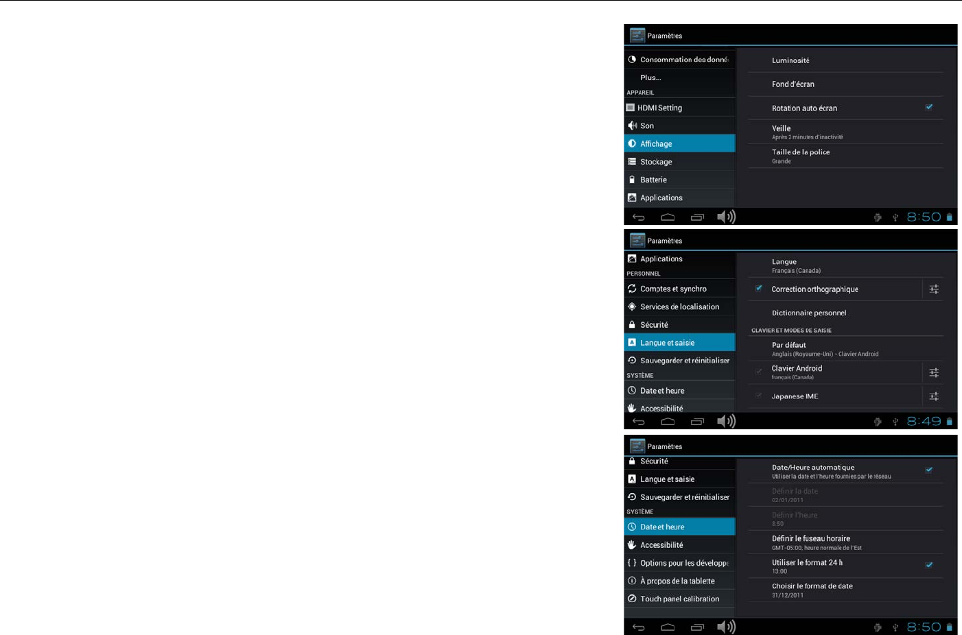 réglage: Affichage rotation Automatique de l'écran, vous pouvez activer /
