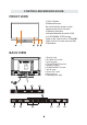 SPECIFICATION Model Description Panel Systems Panel Type Diagonal Size Screen Format Resolution Brightness Contrast View Angle Response Time Maximum Color Color System Sound System Audio System Sound Output LED Panel 32 inches 16:9 1366 x 768 400cd/㎡ 3000:1 178(H)/178V) 6.5 ms 16.7M colors ATSC/QAM/NTSC M BTSC RF Input 75 ohm external terminal Video: 480i, 480p, 720p, 1080i, 1080p. Audio: Two channel linear PCM 32, 44.1 and 48kHz, 16, 20 and 24 bits D-sub 15pin G: 0.7Vp-p, 75ohms B: 0.