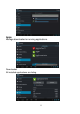 4. System settings On the desktop, press menu button and select system settings. 5. In System Settings Wireless & networks Wi-Fi: Press Wi-Fi to turn on/off Set up each setting as you like. Wi-Fi settings - Press Wi-Fi settings, then the device will automatically search the available Wi-Fi signals. Select the network you want to connect with.