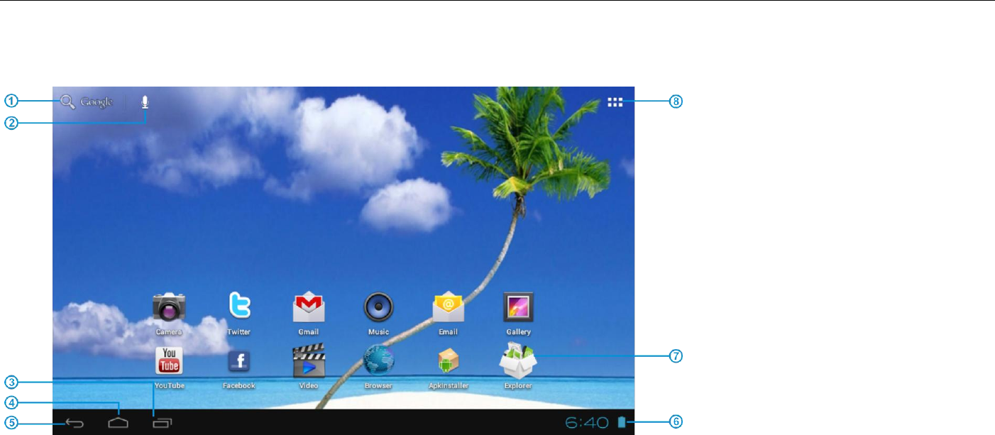 ⑥ Affichage des icônes et des état de l'appareil, cliquer pour allumer l'écran de notification