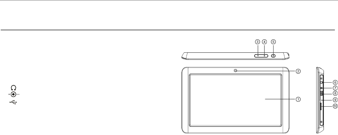 ⑥ :Earphone jack: 3.5mm standard earphone jack.