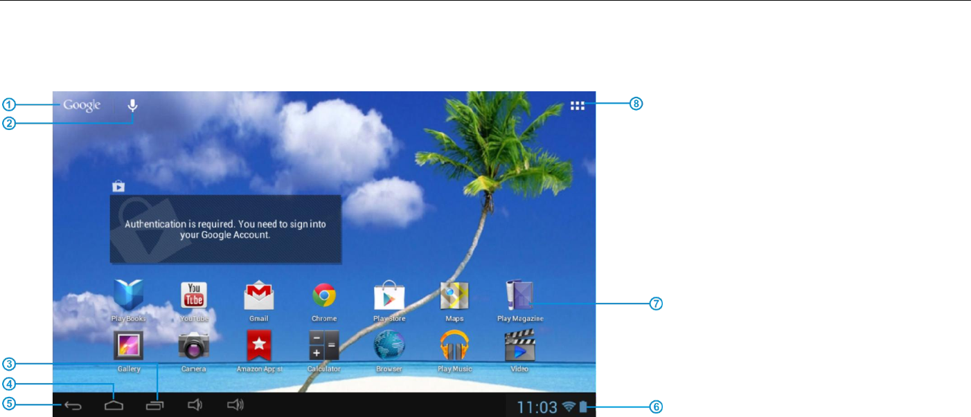 ⑥ Affichage des icônes et des état de l'appareil, cliquer pour allumer l'écran de notification