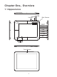 Chapter Five (Specification) Dimension(mm*mm*mm) 202×156×12 Weight Approx 450g LCD 8" 1024 × 768 OS Android 4.1 Processor ARM Cortex-A9 @ 1.5GHZ Memory 1GB DDR3 RAM, 8GB internal WI-FI 802.11b/g/n Connections Micro-USB, Micro-SD (up to 32GB), Headphone Jack Battery 3.7V 4000mAh Li-Poly Service time Up to 4 Hours (it's based on average use, and battery time/ capacity will vary between users).