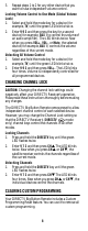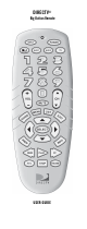 IMPORTANT: Executing this program erases all custom settings for Volume Lock and Channel Lock. 1. 2. Press and hold a device key (for example, DIRECTV). Enter 9 8 1. The last-selected device key blinks twice, pauses, and blinks twice again to confirm that all custom programming is cleared. TROUBLESHOOTING PROBLEM: Light at the top of the remote blinks when you press a key, but the component does not respond. SOLUTION 1: Try replacing the batteries. (See “Installing Batteries” on page 3.