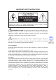 IMPORTANT SAFETY INSTRUCTIONS CAUTION: TO REDUCE THE ELECTRIC SHOCK, DO NOT REMOVE THE COVER (OR BACK). NO USER SERVICEABLE PARTS INSIDE. REFER SERVICING TO QUALIFIED SERVICE PERSONNEL. DANGEROUS VOLTAGE: The lighting flash with arrowhead symbol within an equilateral triangle is intended to alert the user to the presence of uninsulated “dangerous voltage” within the product’s enclosure that may be of sufficient magnitude to constitute a risk of electric shock to persons.