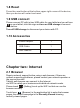 1.8 Reset Press the reset button at the bottom upper right corner of the device, then you device will restart and reset. 1.9 USB connect Please connect PC with in-box USB cable for your tablet and you will see on your tablet, click this sign and turn on USB storage to connect your device. Turn off USB storage to disconnect your device with PC. 1.10 Accessories Power Adapter 1 USB Cable 1 User manuaI 1 Chapter two: Internet 2.