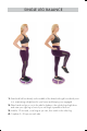LUNGES 1. Start standing with one foot on the balance board, other leg extended behind you. 2. Engage core and place hands on hips or out to the side for balance, then bend knees and lower toward the ground until back knee is about 1-2 inches off the floor. 3. Press back up to the start position and repeat 10 –15 times, then switch legs. 4. To make this slightly easier, perform the lunge with your back toe on the board and front foot flat on the floor.