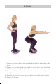 SQUAT 1. Stand on the board with toes facing straight ahead and feet at the edges of the board. 2. Engage your core and extend arms straight out in front of you. Keep chest lifted, head up, and back straight throughout the exercise. 3. Squat toward the ground as you push your buttocks backward, until thighs are parallel to the floor. 4. Pause for one second, then press up through your heels to the starting position. 5. Repeat 10 – 20 times.