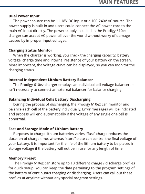 "Prodigy 610ez AC/DC" LiHV/LiPo Balance Battery Charger (6S/10A/100W)