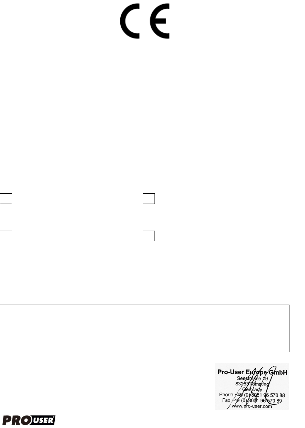 Firmenanschrift: Pro-User Europe GmbH, Seestrasse 19, 83253 Rimsting, Germany