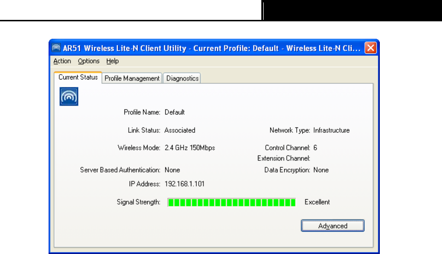 Link Status - This shows whether the station is associated to the wireless network.